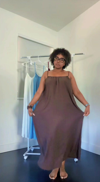 This dress is EVERYTHING. Soft, flowy, and fits perfectly. I'm 5'6", 150lbs and the medium is spot on. The coffee brown isn't see-through at all. I literally want one in every color now.